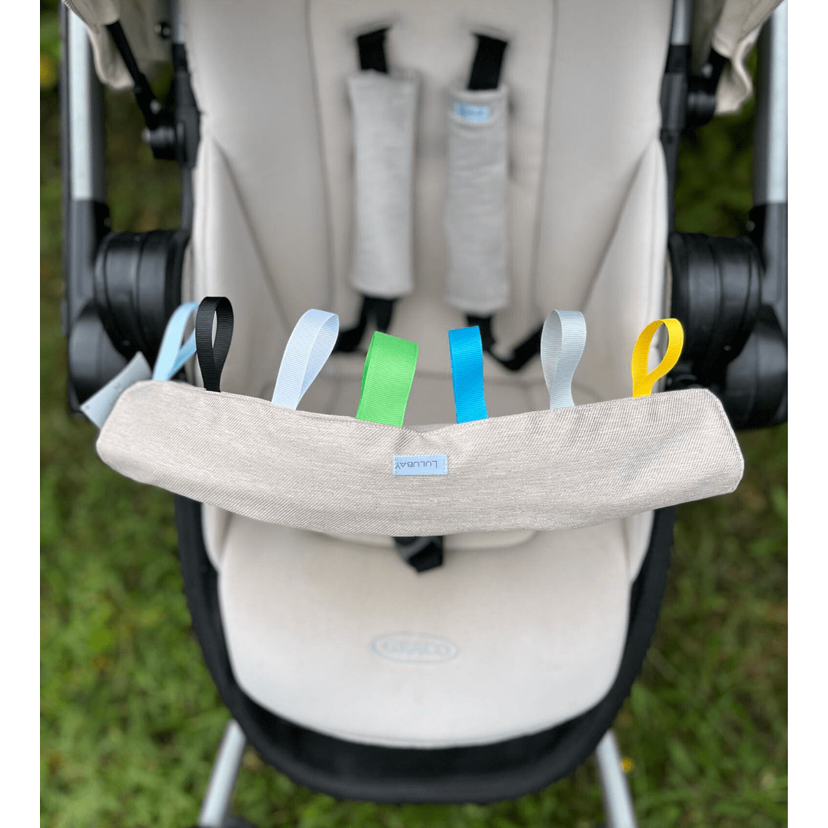 Dwustronny ochraniacz na pałąk do wózka, beżowy ochraniacz z tasiemkami