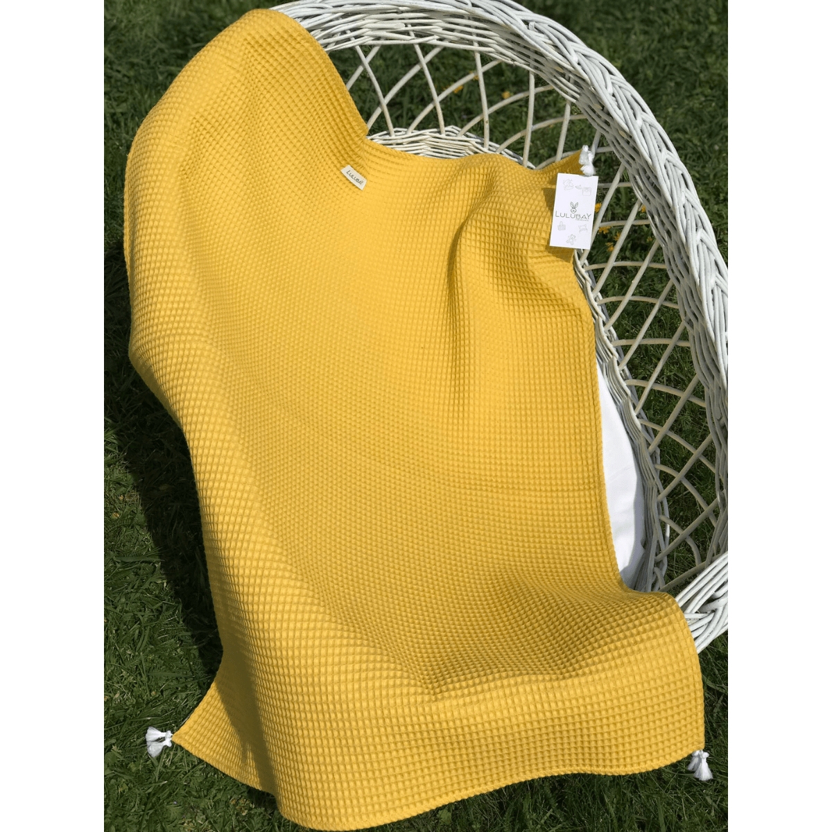 Kocyk otulacz musztardowy wafelek z chwostami Rozmiar 75/100 cm