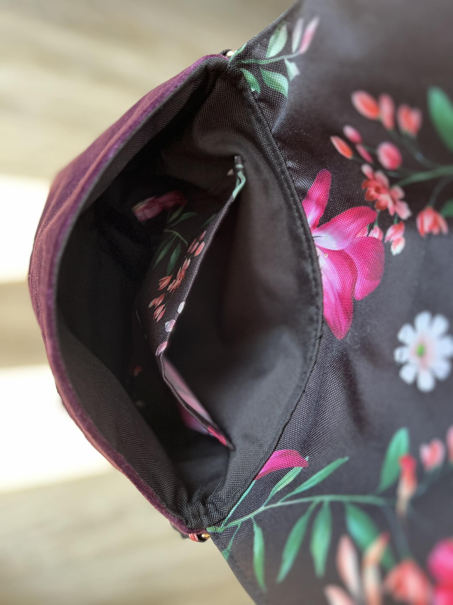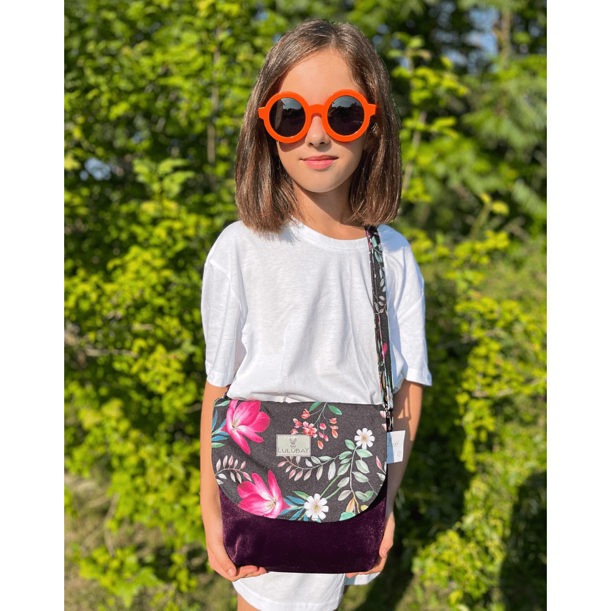 Welurowa torebka w kwiaty, listonoszka damska